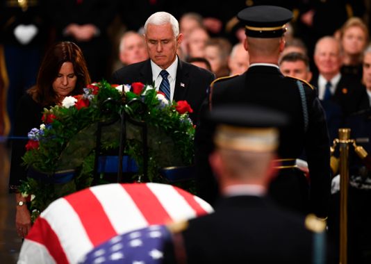 Both Vice President Mike Pence and House Speaker Paul Ryan gave touching eulogies to the former president as his two sons — Jeb and George — sat nearby with their wives. Pence recalled a particular incident that seemed to impact him profoundly. After his son served on the battleship with the former president’s namesake, he… The post WATCH: VP Pence Recalls the Touching Letter George H.W. Bush Sent His Pilot Son appeared first on True Pundit.