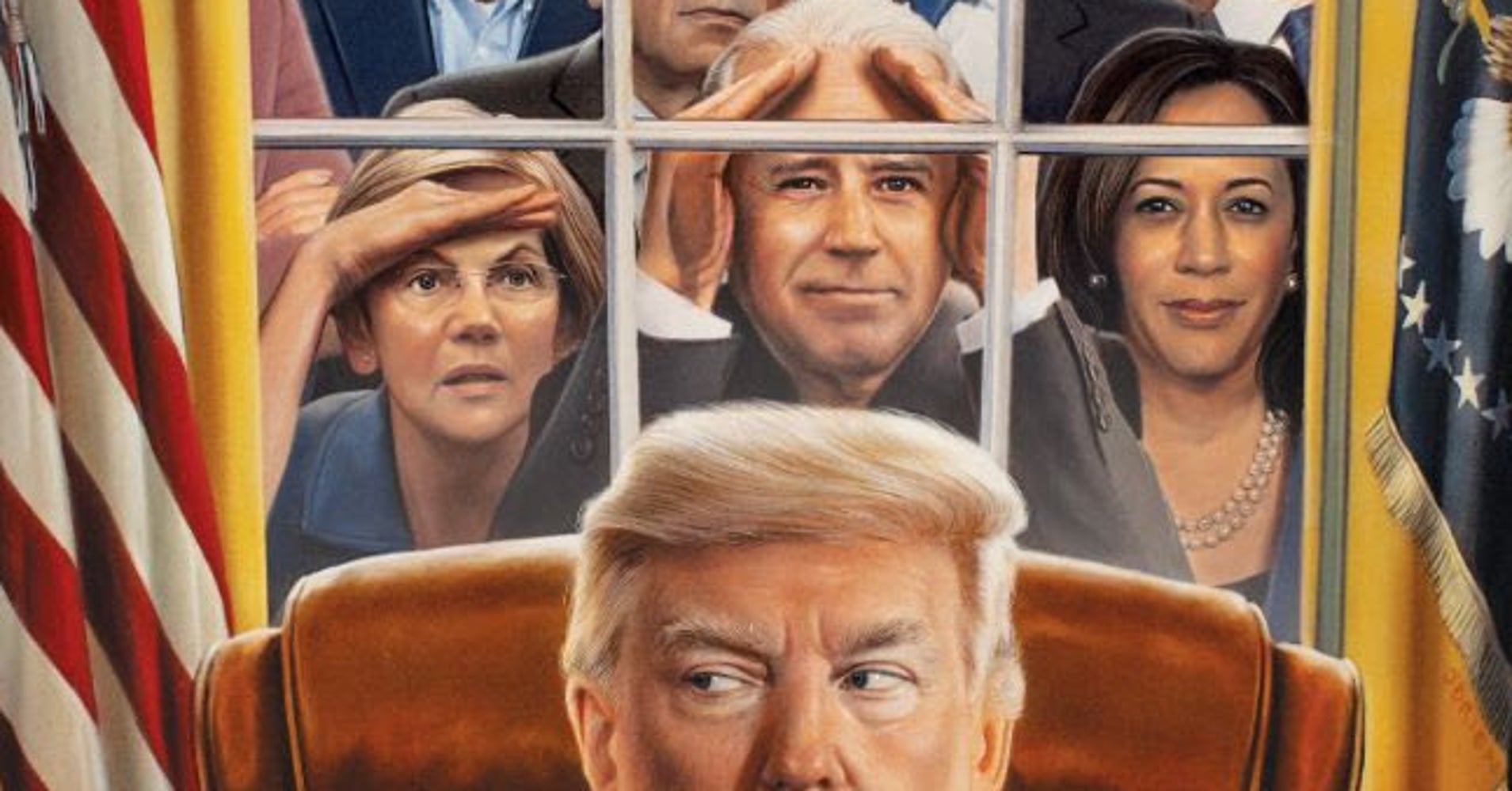 Below is an extract of a post published on Huffpost titled "Donald Trump's 2020 Challengers Peer Through Oval Office Window On New Time Cover"