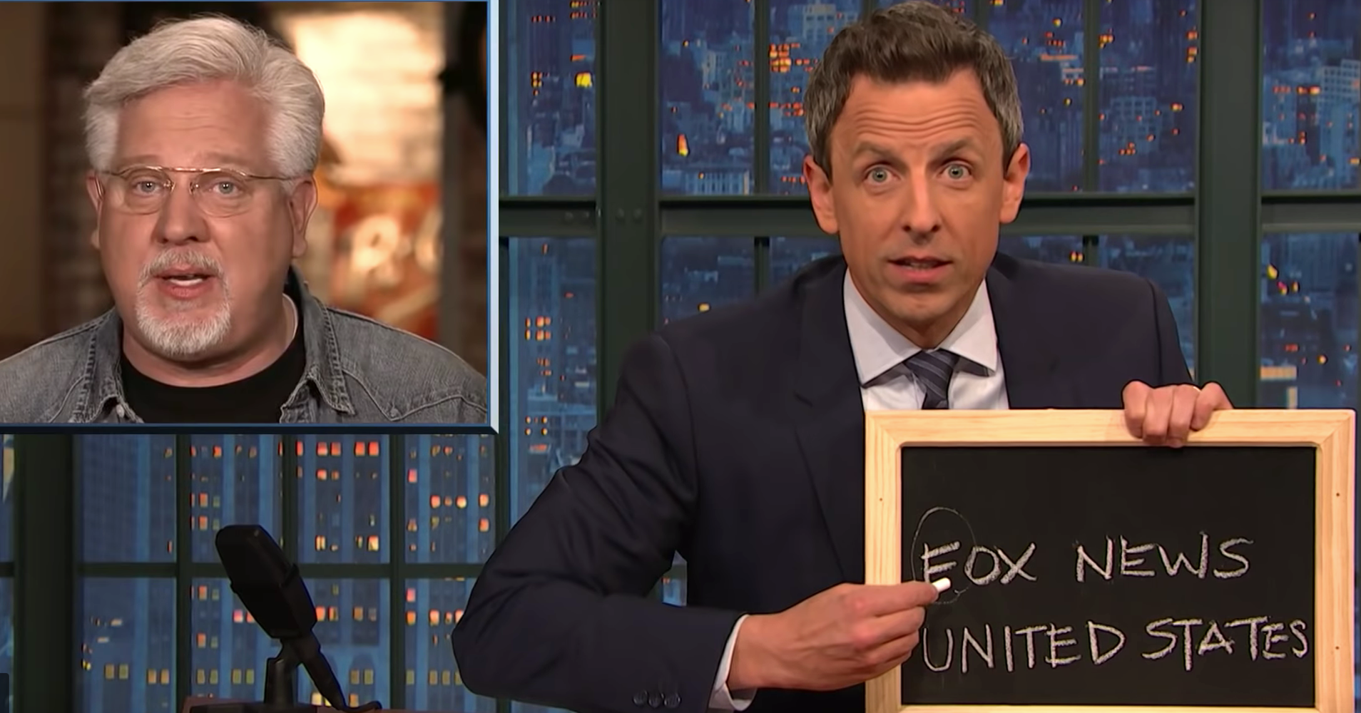 Below is an extract of a post published on Huffpost titled "Seth Meyers Trolls Glenn Beck With A Not-So-Subtle Chalkboard Message"