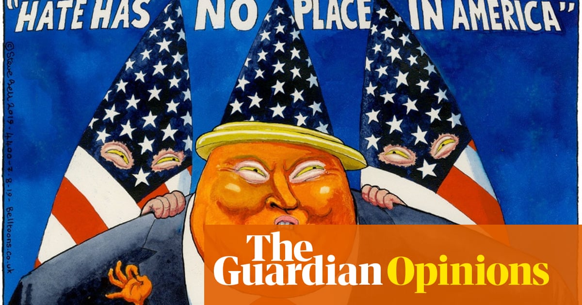 Below is an extract of a post published on Guardian titled "Steve Bell on Trump's response to US mass shootings – cartoon"