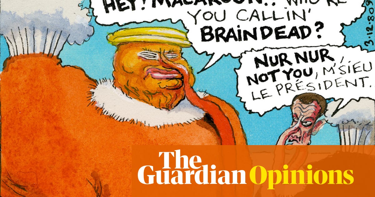Below is an extract of a post published on Guardian titled "Steve Bell’s If ... Trump and Macron talk turkey"