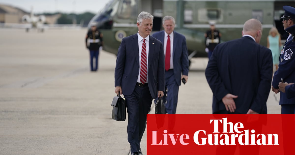 Republicans are proposing $1tn while Democrats want closer to $4tn How the global climate fight could be lost if Trump is re-elected Inside the elite border patrol unit Trump sent to Portland Sign up to our First Thing newsletter 1.28pm BST On Friday, the US supreme court ruled against a Nevada church which said coronavirus-inspired limits on attendance were unconstitutional. Chief Justice John Roberts sided with the court’s four liberals on the case, causing further angst on the right. Now, the Associated Press reports that “more than 40 people were infected with the coronavirus after attending a multi-day revival event at a north Alabama Baptist church, according to the congregation’s pastor. “The whole church has got it, just about,” Al.com quoted pastor Daryl Ross of Warrior Creek Missionary Baptist Church in Marshall county as saying. The pastor says the churchgoers, including himself, tested positive after the congregation held a series of religious services featuring a guest pastor over several days last week. Related: John Roberts sides with supreme court liberals over Nevada church Covid opening 1.19pm BST There has been another night of trouble in Portland, where protesters for policing reform and against structural racism have been out every night since the killing of George Floyd by police in Minneapolis at the end of May. Once again, confrontations centered on the federal courthouse in downtown Portland, where agents sent in by Trump are based. Ammunition and destructive devices recovered at Lownsdale Square Park (Photo) https://t.co/k4ZmvTzlh6 pic.twitter.com/xHaLZM8uWi Related: Portland: protesters bring down fence as confrontation with Trump agents rises 1.07pm BST …and welcome to another day of coverage of the coronavirus pandemic in the US, the election campaign, protests in Portland and other cities and a lot more besides. According to Johns Hopkins University, the US has now recorded more than 4.2m cases of Covid-19 and nearly 147,000 people have died. According to the Covid Tracking Project at the Atlantic, the seven-day average for deaths across the US is back above 900, where it was in early June. Related: ‘These are his people’: inside the elite border patrol unit Trump sent to Portland Related: How the global climate fight could be lost if Trump is re-elected Continue reading…