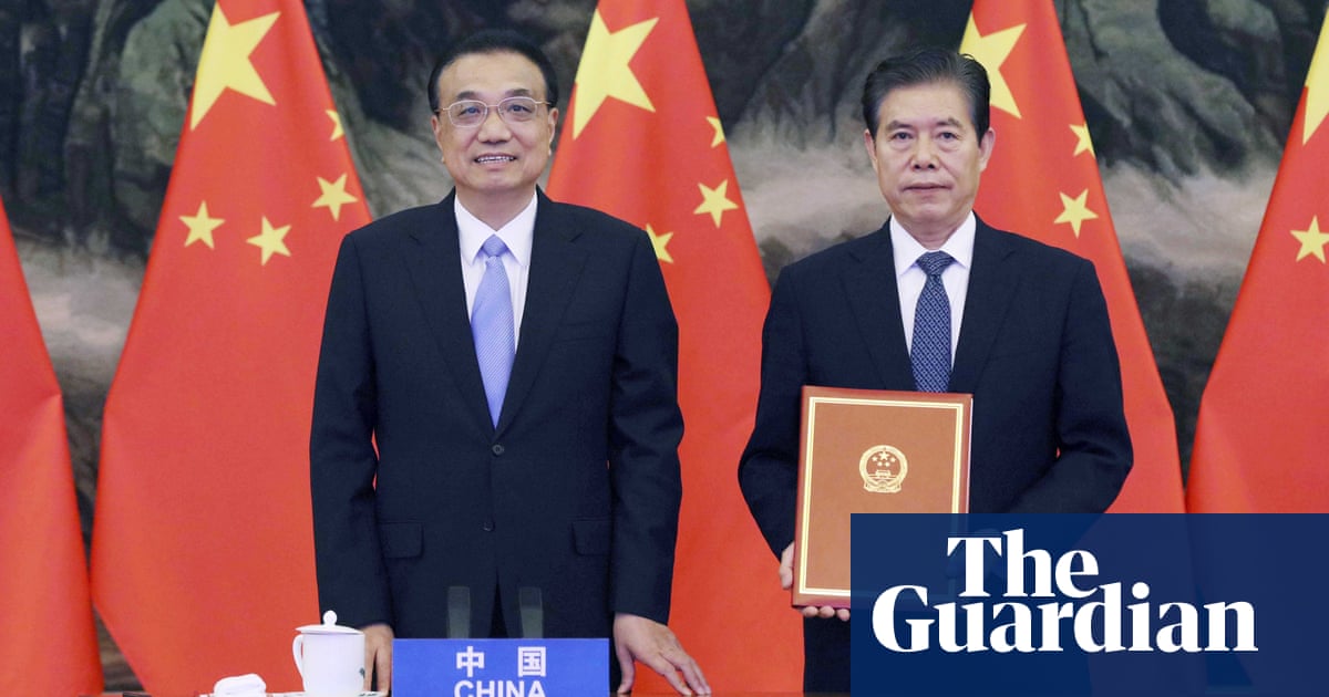 Signing of RCEP unites nations totalling 2.2 billion people and covers 28% of global trade The leaders of China and another 14 countries in the Asia-Pacific region have signed one of the biggest free trade deals in history, covering 2.2 billion people and 30% of the world’s economic output. The Regional Comprehensive Economic Partnership (RCEP) was signed over a video link on Sunday after eight years of negotiations. Related: UK trade department faces race to get £80bn of trade agreements ratified Continue reading…